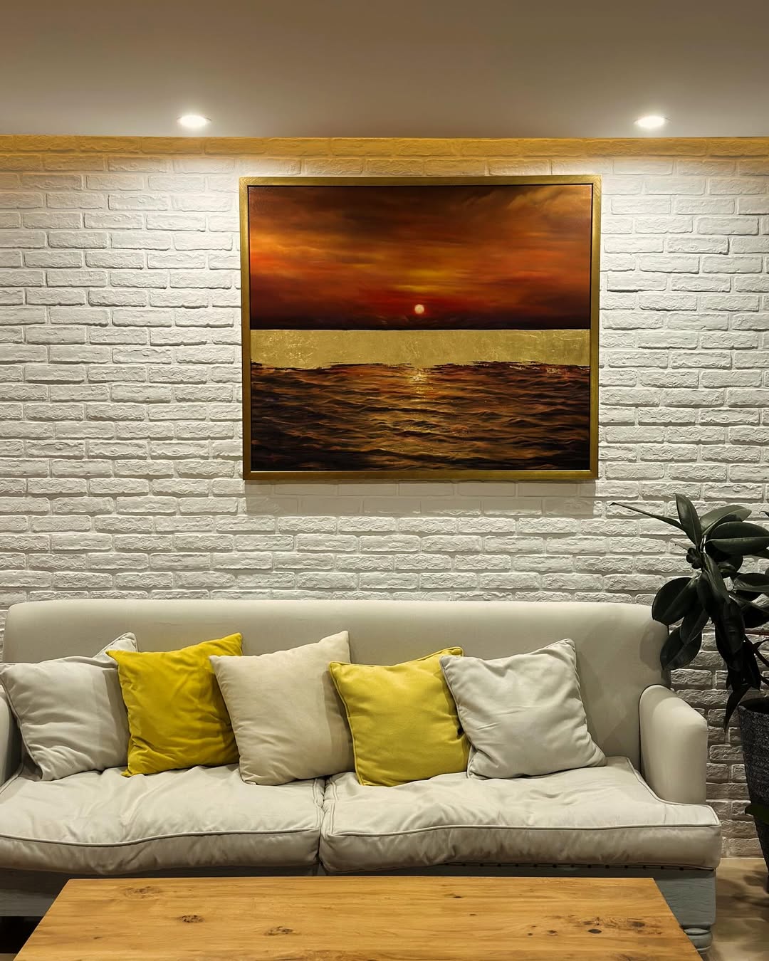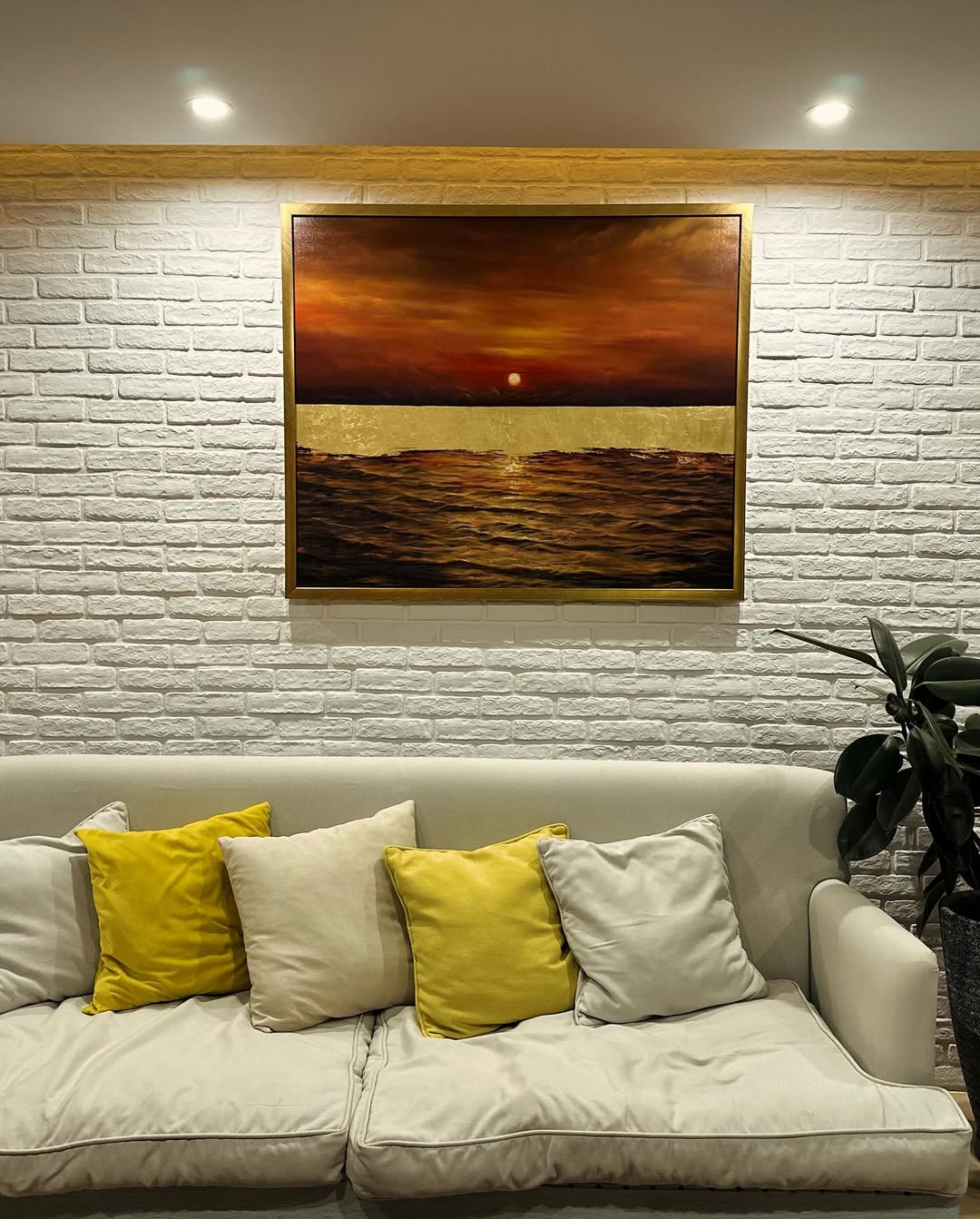 اثر “غروب” با ابعاد ١٠٠*۱۲۰ با تکنیک رنگ و روغن و ورق طلا