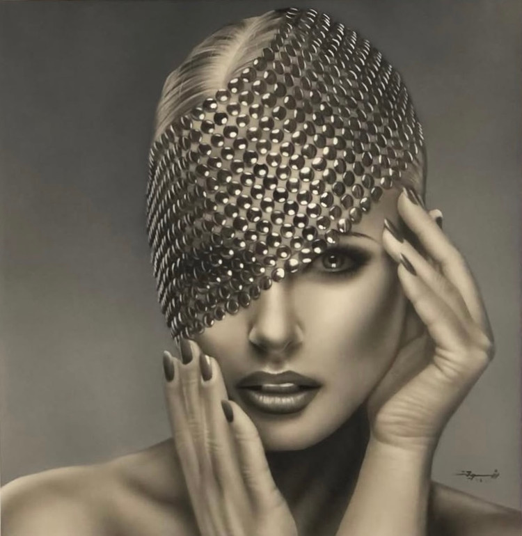 اين محصول با تكنيك سياه قلم كار شده و داراي قاب مشكي با پوشش شيشه است و و ابعادش با قاب ٦٧*٦٧ ميباشد.